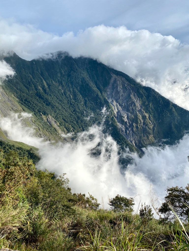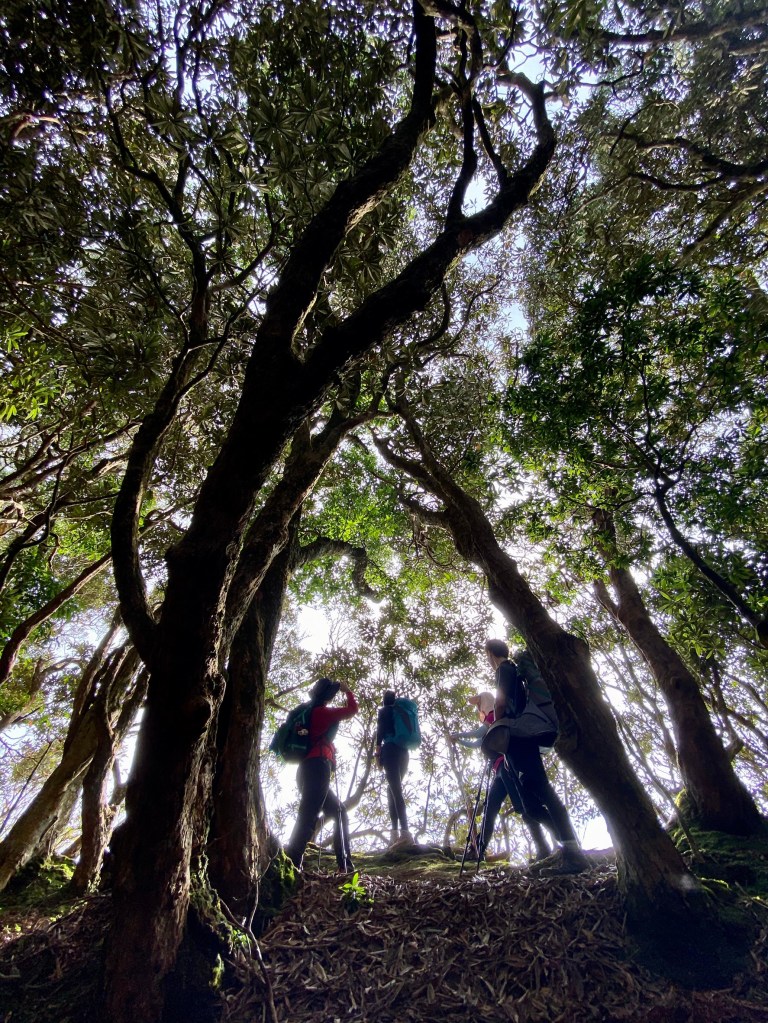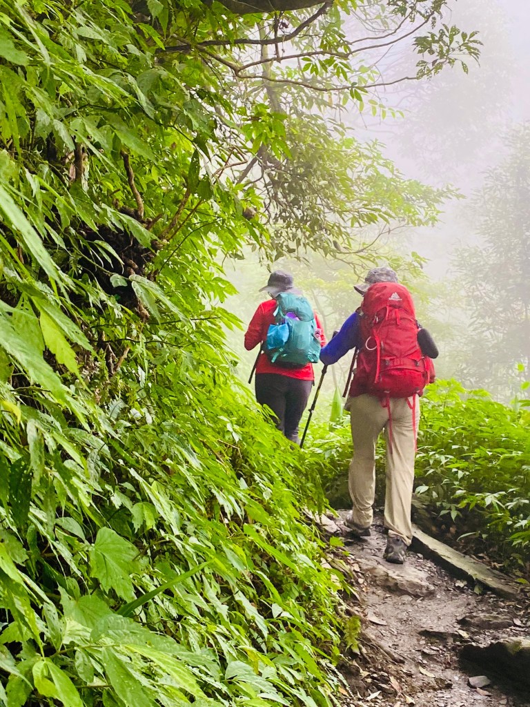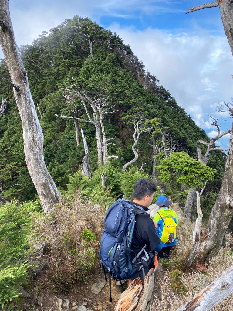 回程視野更好 ,帶著滿足的心情慢慢欣賞那充滿藝術感的奇形異狀鐵杉在北大武這大自然舞台的精彩演出 ,橫渡來時不知驚險的斷崖 ,跟千年神木聊一下 。 回到檜谷山屋用完自理午餐 , 輕快地於下午5點返回新登山口囉。