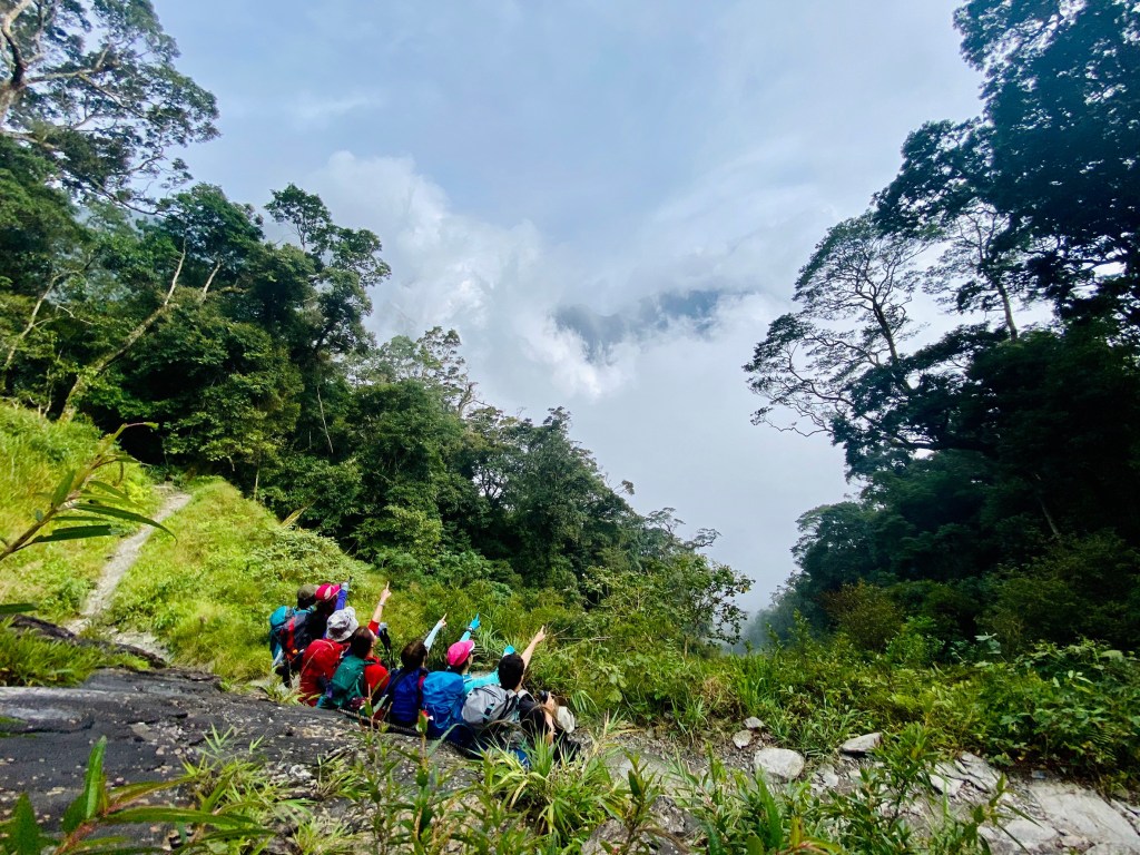 這次舉個沒有D0兩天一夜的衝衝精實團為例 。 D1一早(應該說是凌晨吧 哭哭) 從台北搭車到萬巒 ,先用個早餐兼午餐並做最後的補給 ,又開了一個多小時才到達很深山深山裡面的新登山口,起登時已經是十一點半囉,還好我們當天的行程只到檜谷山莊並坐在喜多麗斷崖朝聖那久聞的夢幻的夕陽,不用太趕路反正要等夕陽囉 。