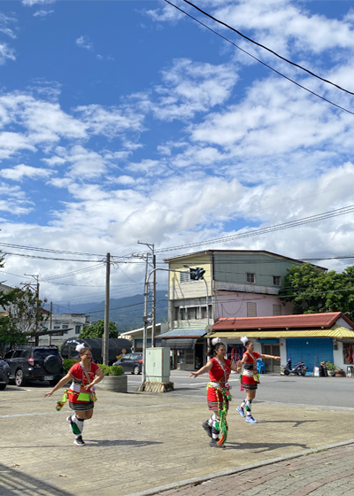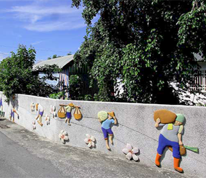 You can see a lot of Ami cultural paintings and sculptures when you walk along the village. Bright color feather headband with lovely and lively red short skirt is definitely a remark of Ami.